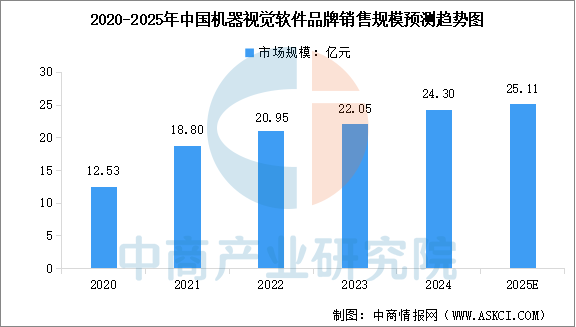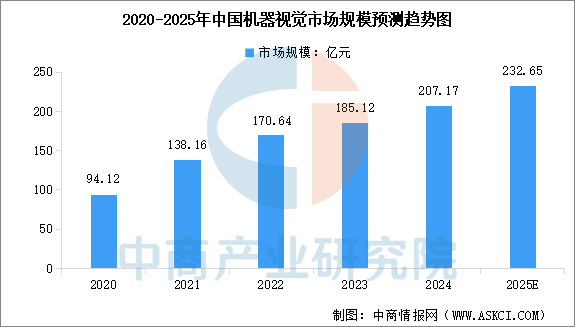 2025年中国机械视觉市场规模将达到232.65亿元。2024年中国机械视觉软件品牌发卖规模24.30亿元,中商财产研究院阐发师预测,